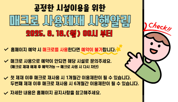 [공정한 시설이용을 위한 매크로 사용제재 시행알림]