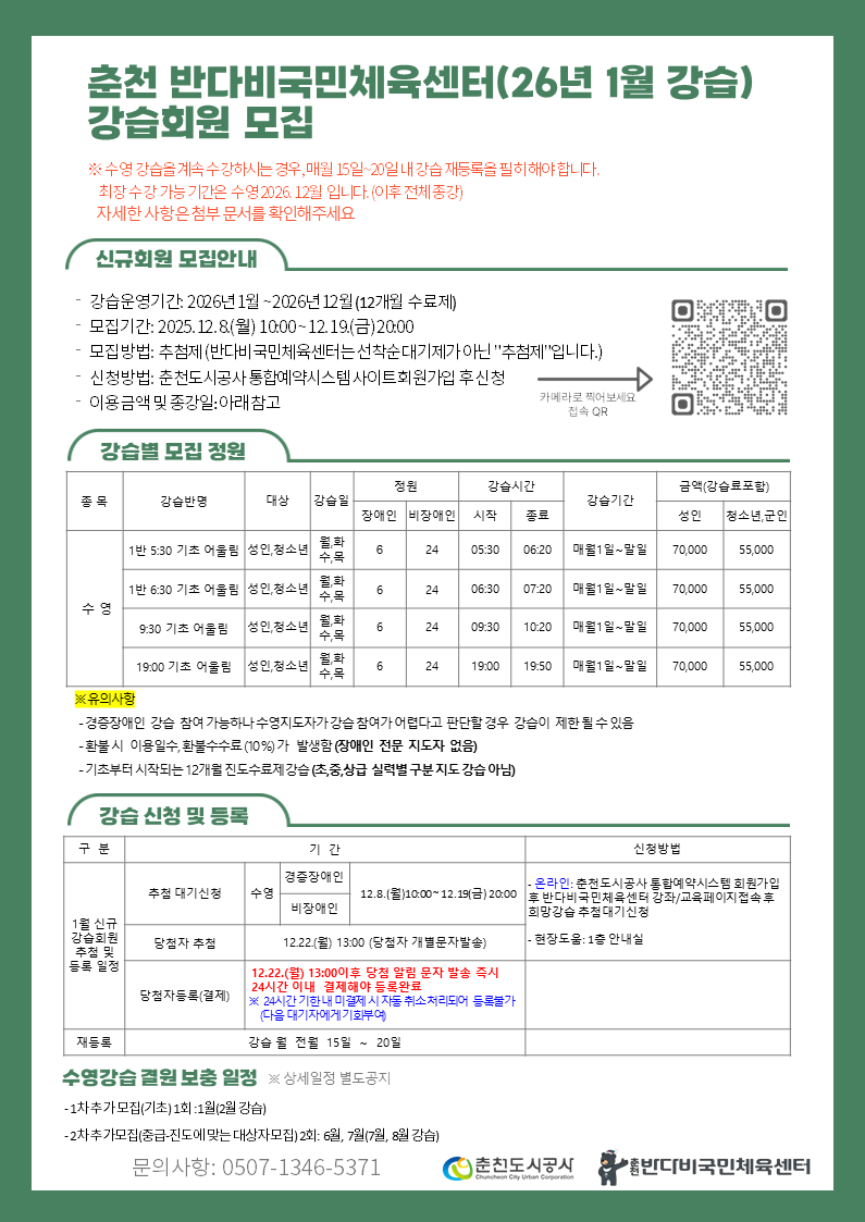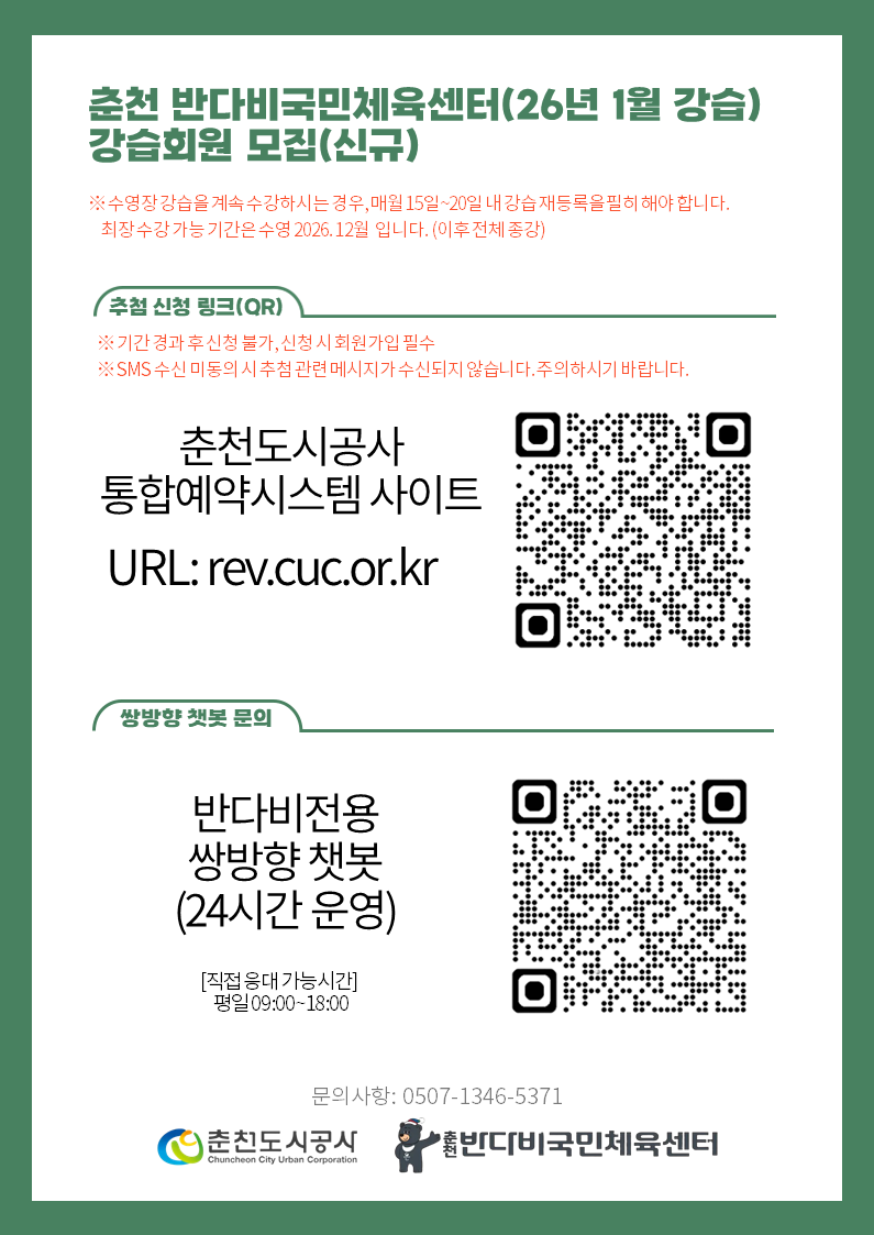 반다비국민체육센터 26년 1월 수영강습 회원모집